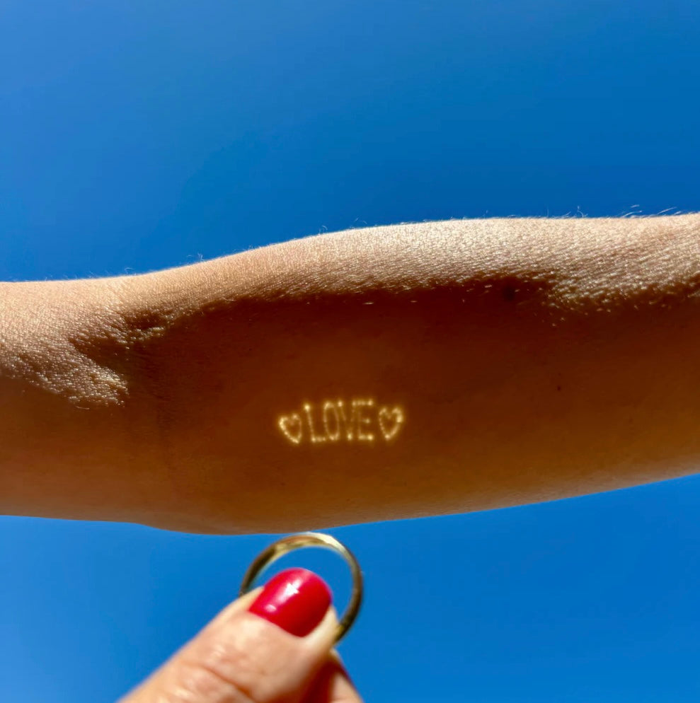 - Projiziert "LOVE" bei Lichteinstrahlung