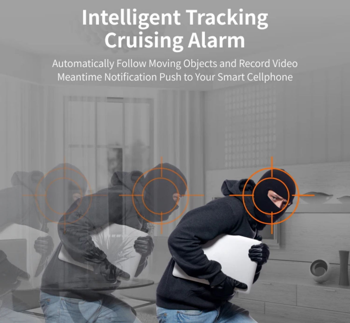 Erfüllen Sie all Ihre Überwachungsbedürfnisse mit der multifunktionalen HD Wifi Überwachungskamera. Sie können kommunizieren, in Echtzeit steuern und erhalten Push-Benachrichtigungen per Smart-Phone.