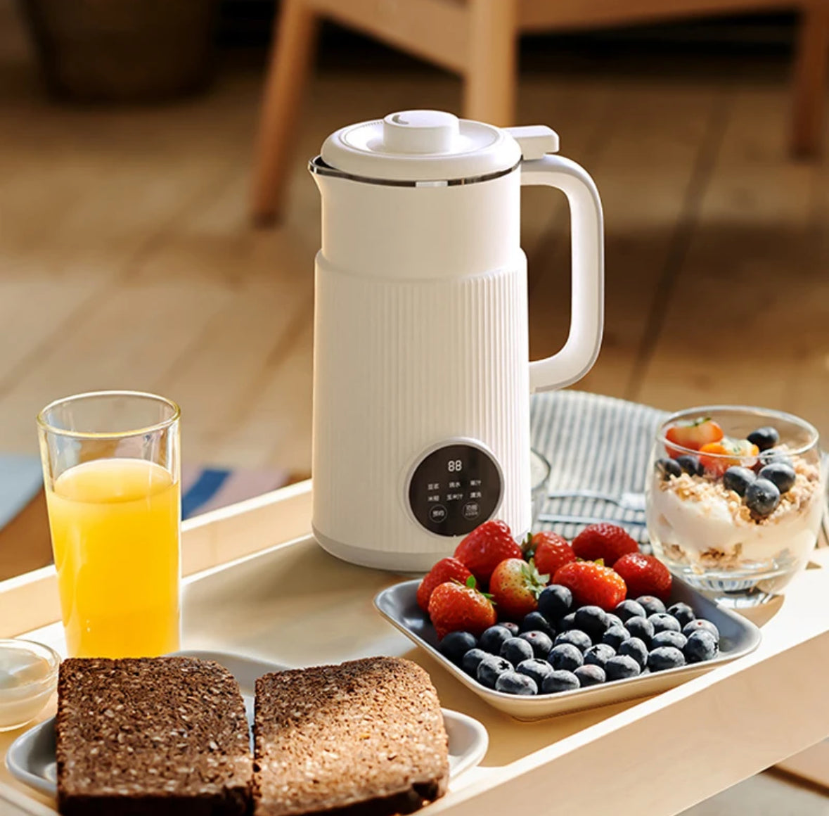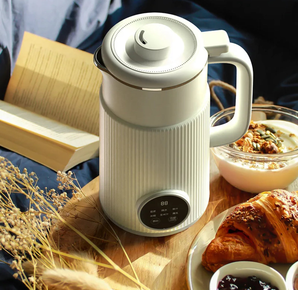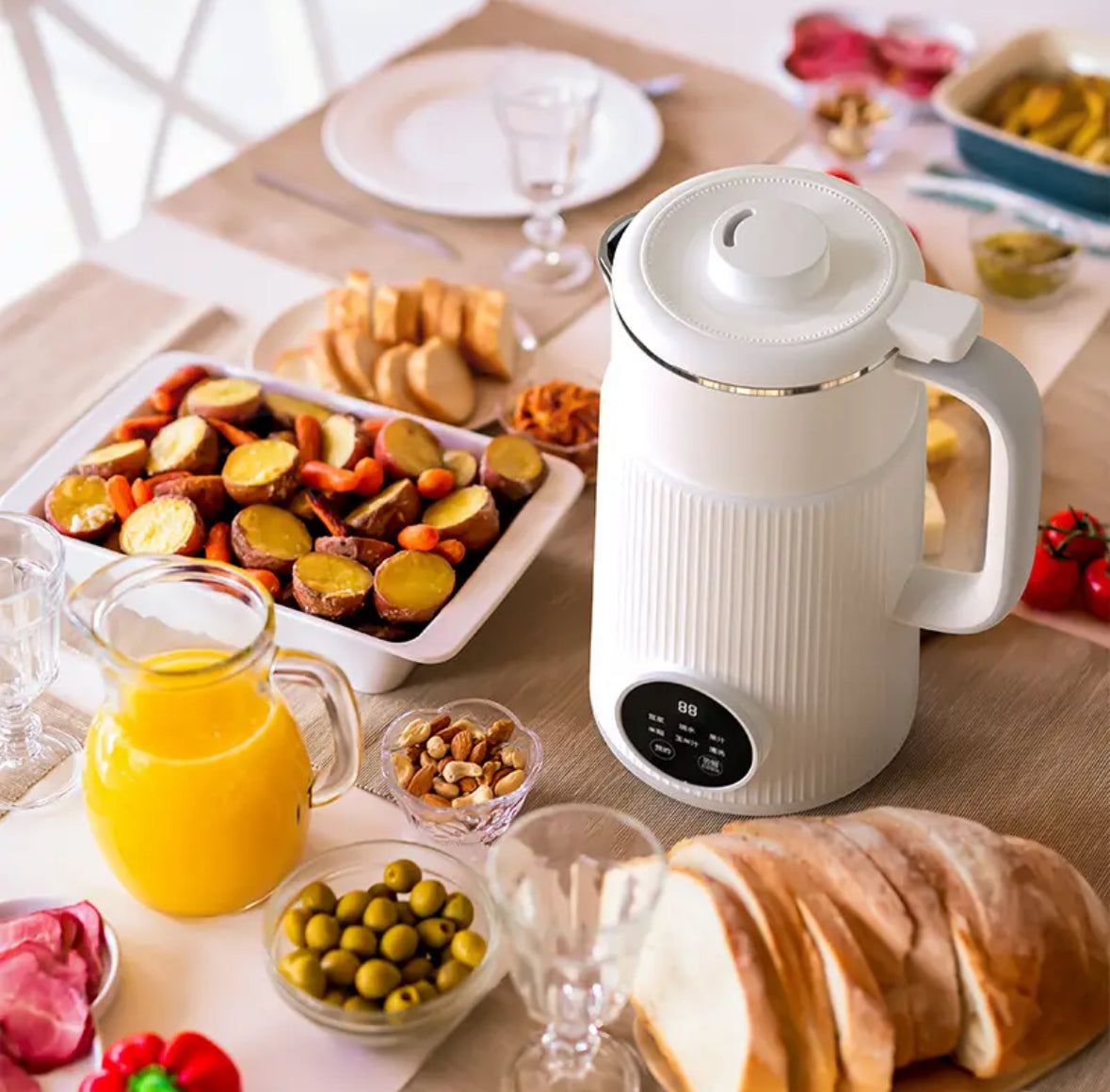 Diese multifunktionale Maschine ist ideal für alle, die frische, hausgemachte Sojabohnenmilch, Frischen Saft, Tee und viel Gesundes mehr lieben. Mit 8 verschiedenen Funktionen und einfacher Bedienung dank LED-Touchdisplay ermöglicht sie Filter-freie Zubereitung von Sojamilch und vielem mehr in nur wenigen Minuten.