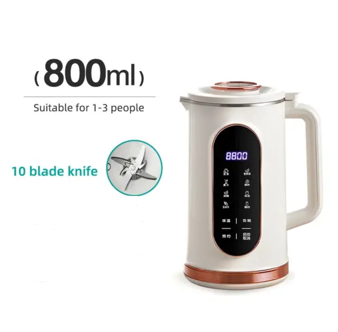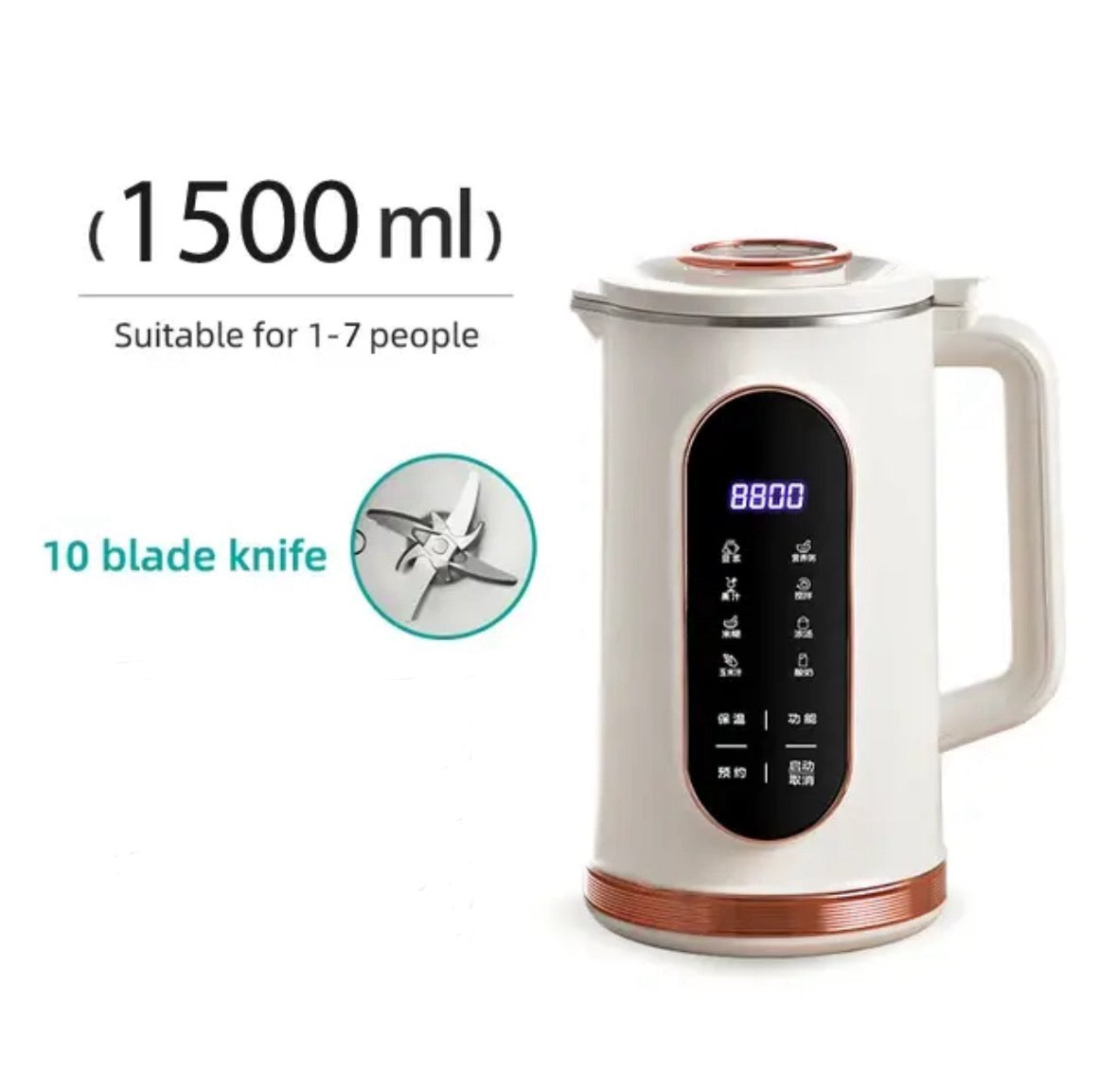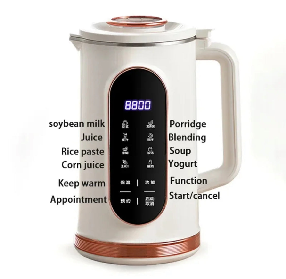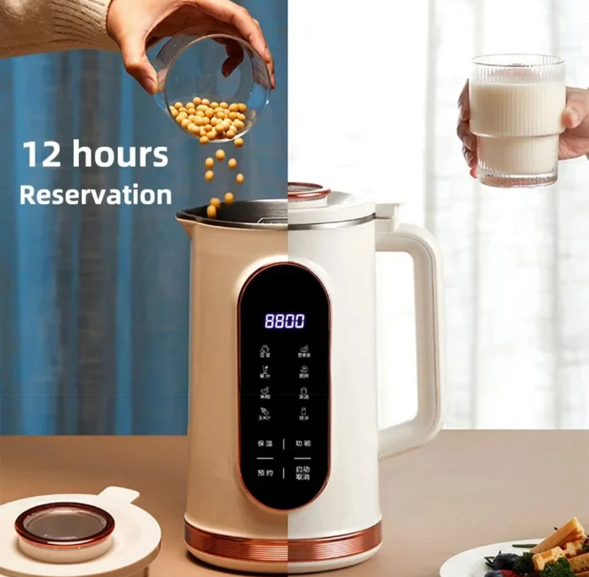 Diese multifunktionale Maschine ist ideal für alle, die frische, hausgemachte Sojabohnenmilch, Frischen Saft, Tee und viel Gesundes mehr lieben. Mit 12 verschiedenen Funktionen und einfacher Bedienung dank LED-Touchdisplay ermöglicht sie Filter-freie Zubereitung von Sojamilch und vielem mehr in nur wenigen Minuten.