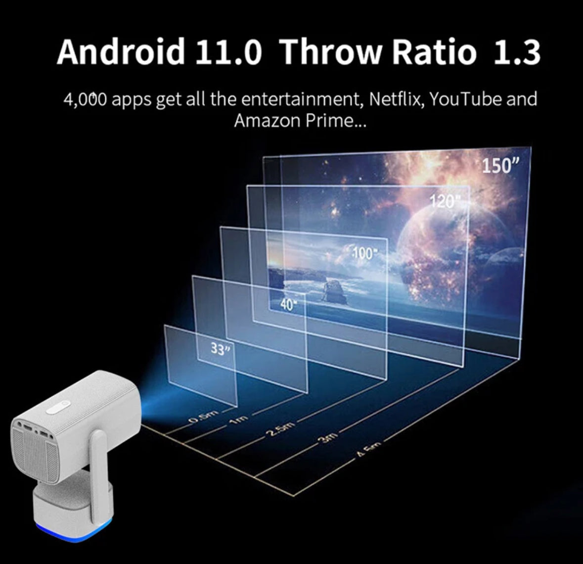 Bringen Sie Ihr Zimmer zum Leben, indem Sie mit dem HY320 Smart UHD Beamer jede Ihrer Lieblingsunterhaltung in hochauflösender 4K-Qualität erleben. Mit kabellosem Wifi, Android 11.0 Betriebssystem und Bluetooth-Konnektivität ermöglicht es Ihnen, Netflix, YouTube und zahlreiche andere Streaming-Apps direkt vom Handy auf die Leinwand zu streamen. Mit dem eingebauten Akku ist der Beamer Perfekt für Unterwegs und zum Mitnehmen!