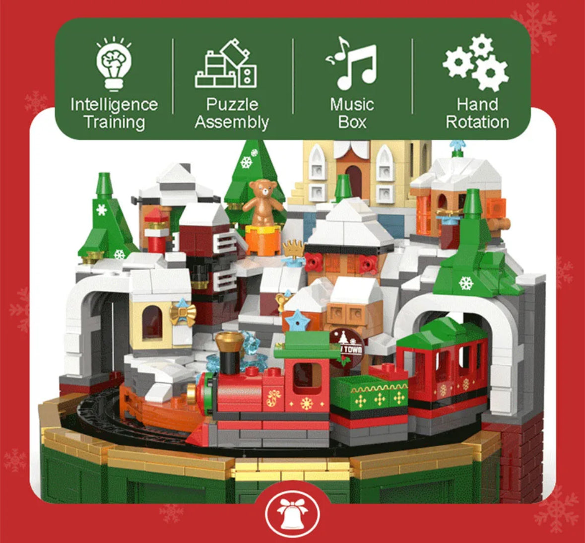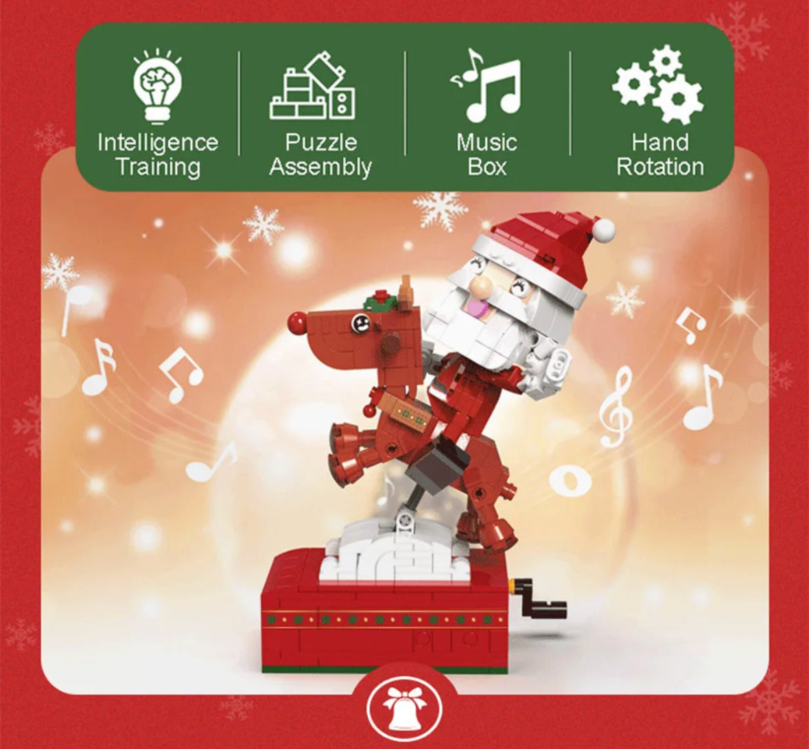 Verschenke unbegrenzte Möglichkeiten mit den Rotierenden Weihnachts Baustein Figuren! Mit bis zu 1455 Bausteinen können wunderschöne Konstruktionen erschaffen werden. Die Figuren drehen sich, leuchten und spielen Musik, für eine unvergessliche Weihnachtsdekoration und ein perfektes Geschenk!!
